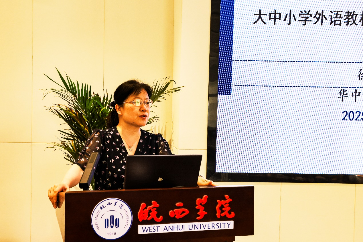 随后,在高瑞阔和王京京博士的主持下,多位专家学者带来了精彩的主题报告。徐锦芬以 “大中小学外语教材思政内容一体化建设” 为题,阐释了外语教材思政内容一体化的内涵,提出建设应体现学生特点、学段特性和学科特色,遵循连贯性、渐进性和立体化等原则,并从目标设定、素材选择、活动设计、效果评估四个方面解析了推进路径。