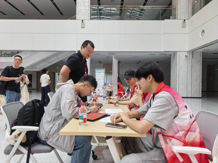 交流中,袁维海重点询问新生报到情况和课堂准备情况等,强调新生入学是学校人才培养的重要起点,要将服务温度融入报到全流程,为新生尽快融入研究生生活奠定基础;同时鼓励新生珍惜青春大好时光,力求学业上潜精研思、实践中力学笃行,以积极的态度和饱满的精神迎接即将开始的研究生生活。迎新现场,领导、老师们穿梭其间,关切询问新生路途是否顺利、是否适应,亲切叮咛让新生倍感温暖。