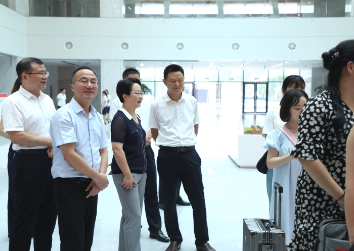 8月30日上午,皖西学院科技楼内迎新氛围浓厚,各迎新区域布局规范、指引清晰,志愿服务队伍有序开展咨询引导、行李协助等工作,全力保障新生入学流程顺畅。迎新期间,校党委书记袁维海,校党委副书记胡林娜,校党委委员、副院长张刚和校党委委员、副院长符茂胜一行深入迎新现场,全面了解2025级硕士研究生新生报到实时进展,详细询问现场服务保障情况,与新生及工作人员亲切交流,送上温暖的问候与祝福,寄予殷切的期盼。