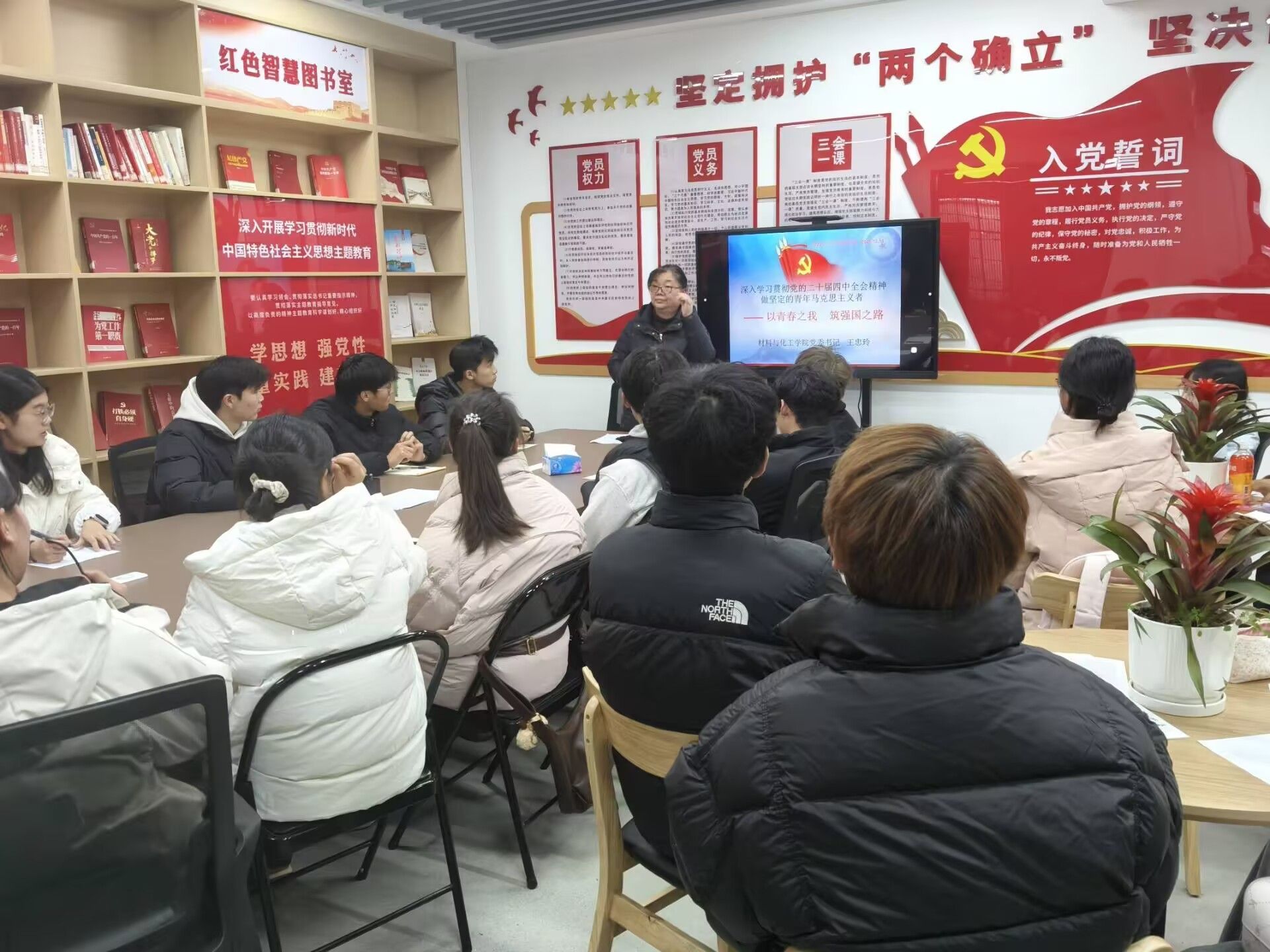 12月18日,皖西学院材化学院党委书记王忠玲以“深入学习贯彻党的二十届四中全会精神,做坚定的青年马克思主义者”为主题,为学院“青苗班”学员讲授专题党课。党课围绕“时代坐标”“核心要义”“使命召唤”“实践路径”“青春誓言”五个维度展开。王忠玲系统阐释了全会的历史意义与战略部署,强调要坚持党的全面领导、加快科技自立自强、推动高质量发展,让现代化成果更多惠及全体人民。她指出,全会精神对青年一代提出了明确要求,发展新质生产力、推进中国式现代化迫切需要青年勇于创新、担当重任。