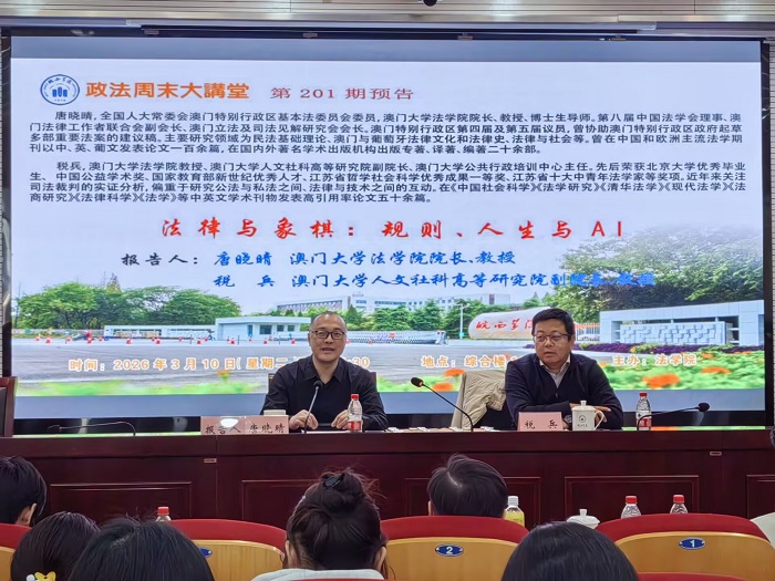 澳门大学法学院唐晓晴院长、税兵教授做客皖西学院“政法周末大讲堂”深度对谈“法律与象棋:规则、人生与AI”