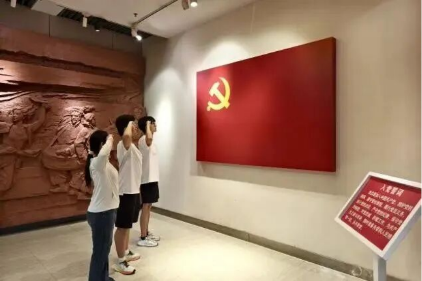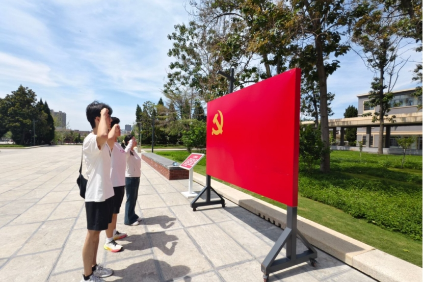 精神的传承,要落到青年的行动中。实践团成员在一次次宣誓、一声声感悟中,将焦裕禄精神内化为奋斗的力量。在焦裕禄纪念园的党旗前、兰考县人民纪念馆的党旗下,三名预备党员两度高举右拳,庄严宣誓:“我志愿加入中国共产党……”誓言回荡在红色场馆中,既是对党的忠诚承诺,更是传承焦裕禄精神的决心。佟欣洋同学感慨:“作为西电学子,我们始终铭记学校‘对党忠诚、为国奉献’的红色底色,在焦裕禄书记陵墓前宣誓,更懂‘党员’二字的千钧重量,未来必以他为榜样,把为人民服务刻进生命里,用我们的技术专长为国家发展添砖加瓦。”