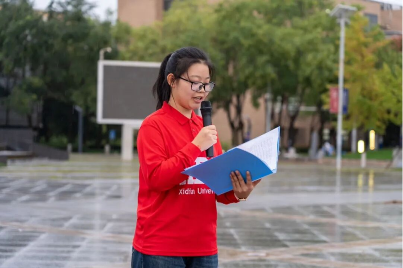 作为学生代表发言。她带领大家一起思考,作为西电最年轻、最有活力、最富生气的新生一代,该如何接过前辈手中的接力棒?她说,我们要主动走进校史馆、红色实践基地,了解西电红色传统,学习科学家精神,让“爱党爱国”成为行动自觉。主动夯实学业基础,把课堂当作“练兵场”,发奋学习,不畏困难,擦亮“学在西电”精神底色。主动拥抱健康生活,积极参与文体活动,涵养个人情操,坚持身心共育,注重全面发展。最后,她号召同学们,一定要抓住新生入学后的关键时期,塑造良好的生活习惯和学习习惯,从落实“一日生活制度”做起,从积极参加“阳光晨跑”活动做起,从认真完成好每一次作业做起,在细节点滴中磨练意志,做一名合格大学生,携手成长为有理想、敢担当、能吃苦、肯奋斗的新时代好青年!