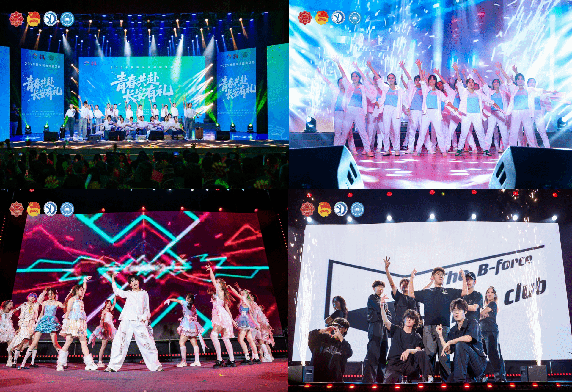 晚会聚焦青春与梦想,为新生们展示追逐梦想的广阔天地。《青春的誓言》社团成员们倾情演绎大学生活的无限可能。《向祖国报告》大学生艺术团朗诵与主持人团以朗诵形式展现西电人矢志不渝的科技报国情怀。《夜空中最亮的星》大学生艺术团合唱团用温暖的歌声传递对科技工作者的敬意,激励同学们勇攀科学高峰。《网安攻防战》信息网络技术中心通过现场模拟钓鱼攻击事件,为同学们敲响网络安全警钟;陕西省魔术家协会理事屈捷与MiracleMiracle魔术社学生共同演绎魔术《奇迹时刻》《祝愿》,介四相声社带来的《打灯谜》将欢声笑语带给全场。夏天音乐社、大学生艺术团、TON乐团及校歌赛十强歌手轮番登台,从深情的乐队演奏到充满故事感的独唱,每首歌都引起共鸣,引发大合唱。来自IDOL舞社、B-Force街舞社、Shining动漫社的同学们,把年轻的朝气洒满舞台,感染着台下每一颗跳动的心脏,令台下尖叫不断。这些节目各具特色,共同构成这场主题鲜明、创意无限的迎新晚会,为新生们开启充满希望与梦想的大学生活新旅程。
