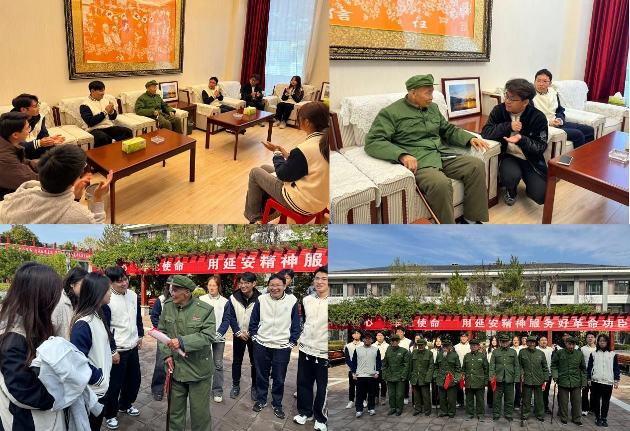 “笃行班”学员们走进“八一敬老院”,与革命老战士展开一场跨代际的“红色对话”。九十多岁的童老讲述随刘志丹将军转战陕北的峥嵘岁月——枪林弹雨的考验、风餐露宿的坚守等等,都饱含着老一辈革命者的忠诚与无畏。听完故事后,学员陈浩男分享西电与延安的深厚渊源,从革命时期助力通信保障,到如今西电学子在芯片、国防通信等领域攻克技术难关、服务国家战略的贡献,将西电人“信息报国”的初心与担当娓娓道来。童老握着学员的手,郑重嘱咐“练就本领、建设祖国”。延安精神的薪火在这一刻完成了温暖传递。