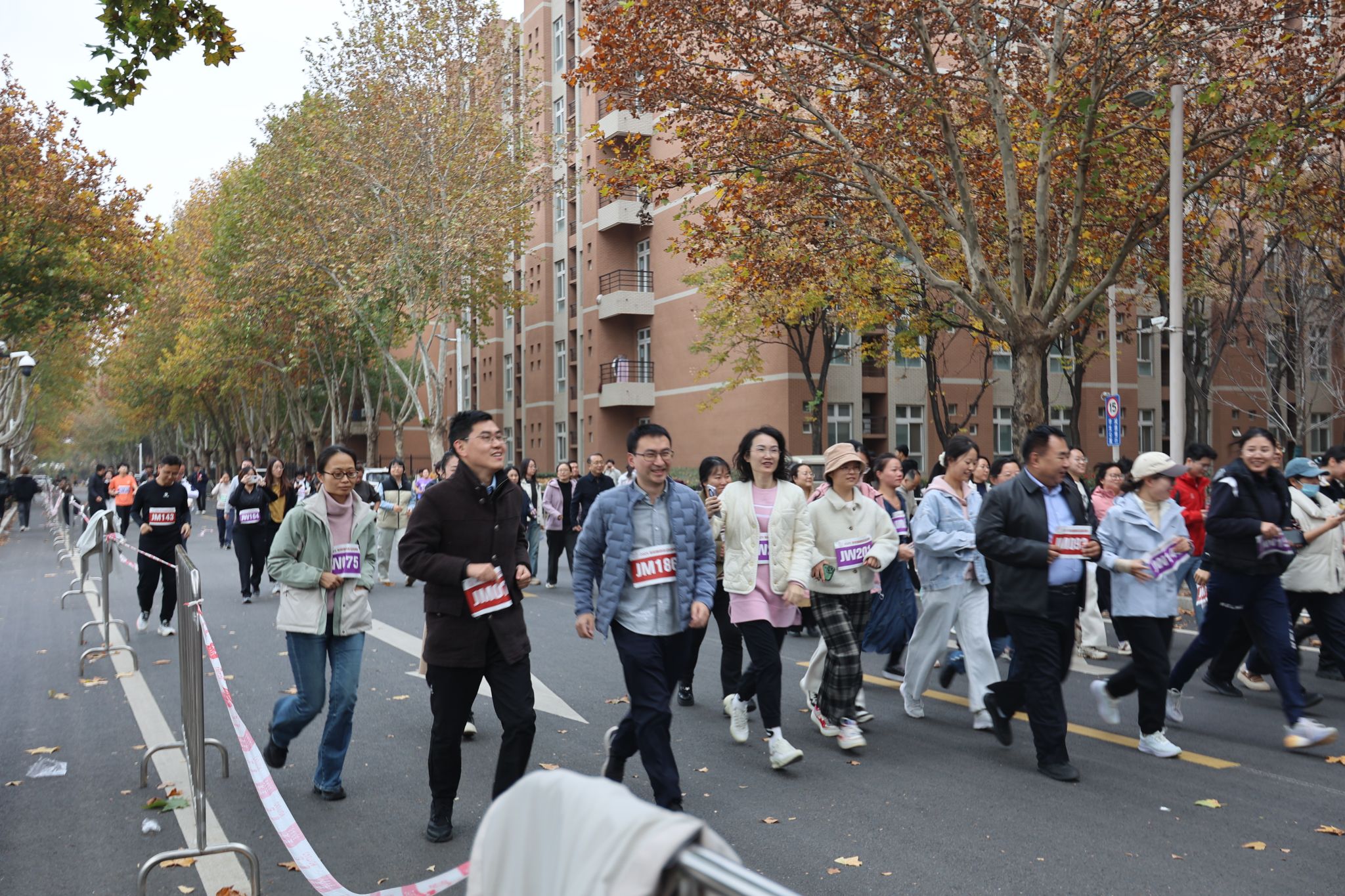据悉,本场迷你马拉松赛事起点设于北操场梧桐大道,参赛者沿校园环路奔跑,全程共计5公里,分学生男子组、女子组,教职工(含校友)男子组、女子组。下午四时,参赛选手们精神抖擞、齐聚起点。16点30分,党委常委、副校长王泉在开幕式上鸣枪开赛。