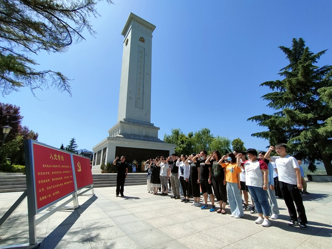 在渭华起义烈士纪念碑前,艺术学院第三党支部书记仝佛光向大家讲述了渭华起义事件的起因、经过及结果。艺术学院党委书记徐中带领全体师生党员在纪念碑前重温入党誓词。