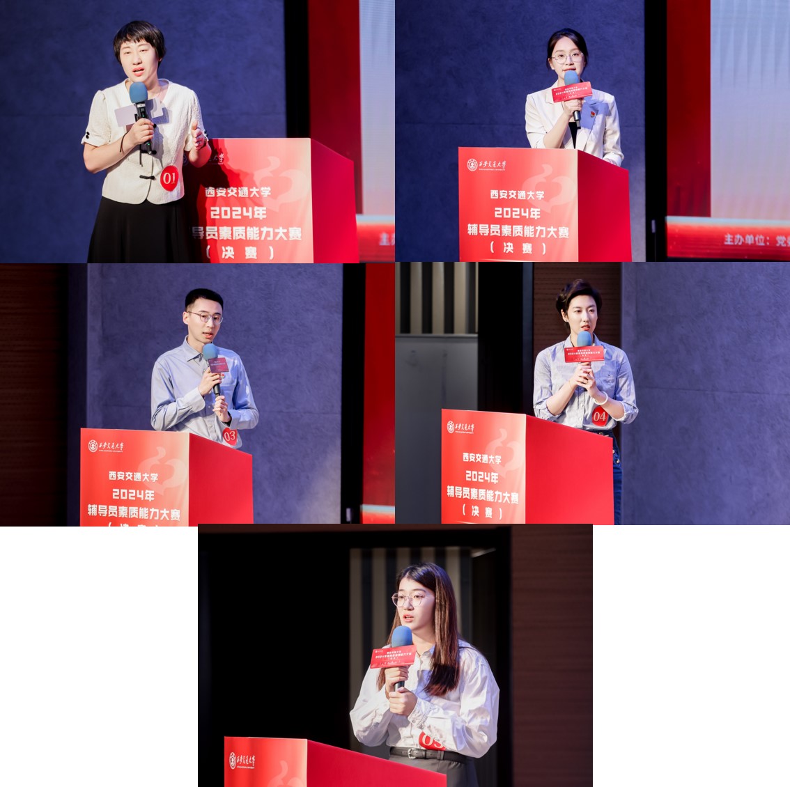 决赛阶段紧张而激烈,5名经过层层选拔的优秀辅导员各展所长、巅峰对决,充分展现了西安交大辅导员深切的爱生情怀、深厚的工作积淀、精湛的职业素养。