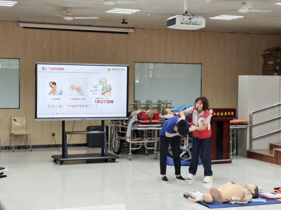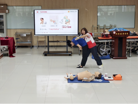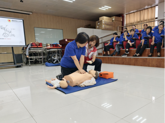 为夯实学生社区安全稳定,保障学生在公寓突发身体不适时,管理员们可以通过急救知识保护学生。学生社区邀请西安市红十字会为公寓管理员和学校后勤工作人员开展“应急救护培训”。