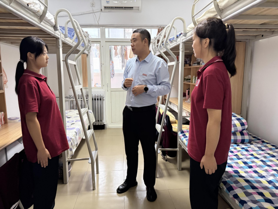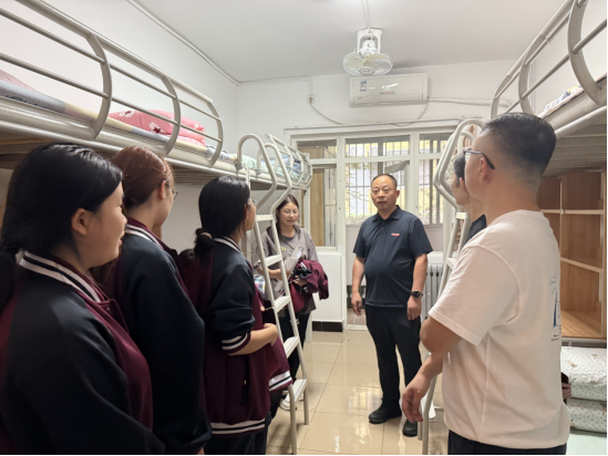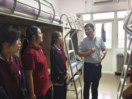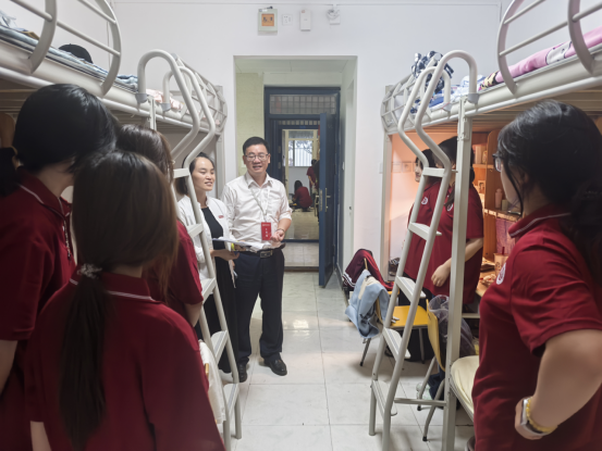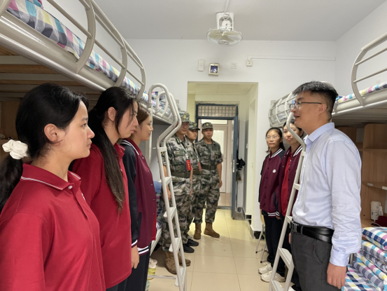 新生内务整理验收期间,各学院领导携新生辅导员走进社区与新生面对面交流,关心询问同学们的饮食作息、军训收获,以及大学生活中遇到的困难,全面了解同学们的大学适应情况。学院领导向同学们传递了学校对新生的关怀,叮嘱同学们尽快适应集体生活,遵守宿舍管理规定,在军训中磨练意志、强健体魄,为即将开始的大学生活打下坚实基础。