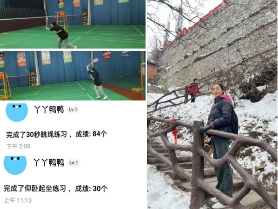 体育是强魄之要,学生们积极养成健康自律的生活习惯,做到早睡早起。结合自身体能、兴趣及场地条件,制定个性化“每天运动1 小时”锻炼方案,通过寒假,学会一项体育运动技能,培养1项体育运动爱好,同时确保运动兼顾有氧、力量与拉伸。