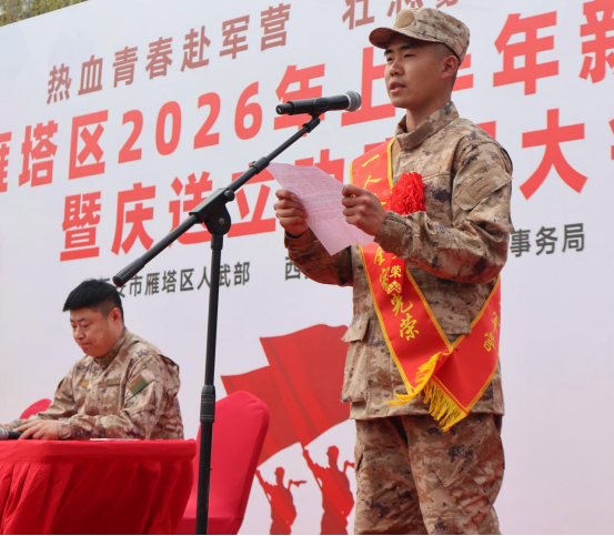 我校传媒与设计学院学生佟德鑫,在本次雁塔区新兵入伍欢送暨庆送立功喜报大会上,代表全区入伍新兵发言。他表示,作为新时代青年,要生逢盛世,更应勇担使命。今后,将牢记保家卫国的初心使命,把个人理想融入国防事业,以坚定的理想信念筑牢思想根基;将严守军队铁的纪律,绝对服从命令、听从指挥,锤炼过硬作风;将发扬不怕苦、不怕累的精神,刻苦训练、潜心钻研,努力提升军事本领,敢闯敢拼、勇当标兵;将始终心系母校、情系故里,牢记母校的教诲,不负家乡的期望,用热血与汗水书写青春无悔的军旅答卷,争取早日建功军营、载誉归来,为母校争光、为家乡添彩!青春心向党