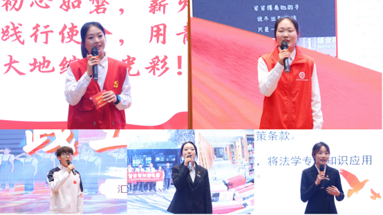 法学院辅导员关鑫结合一线实践指导经历,分享实践育人的路径思考与工作感悟。来自德智体美劳五个维度的学生代表依次登台,讲述返乡践学的成长收获。
