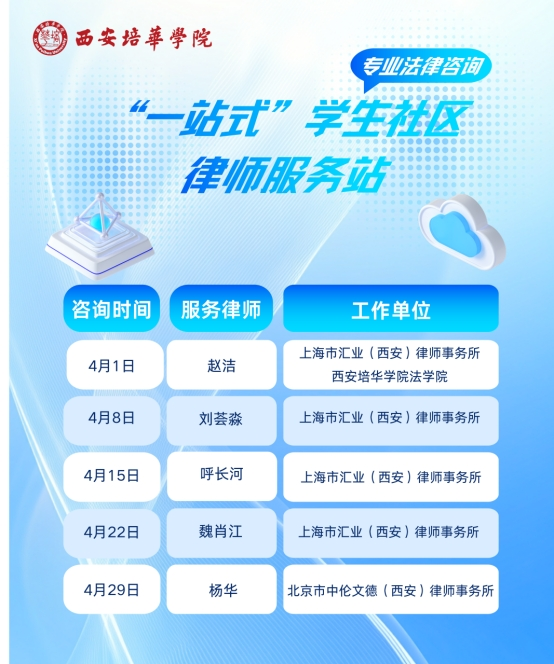 目前,服务站2026年4月份律师驻站服务安排表已全面排定,后续将持续邀请校内外专业律师、法学专家定期驻场,为全校学生提供常态化、专业化、个性化的法治服务,让学生足不出校就能享受到专业的法律支持,切实打通校园法律服务“最后一公里”。