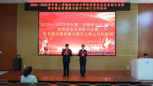 为进一步加强学院宣传队伍建设,提升信息宣传工作质量和水平,充分发挥信息宣传的重要作用,西铁院牵引动力学院于2025年6月26日在105教室组织召开优秀信息员表彰暨第十四期写作能力培训活动。西铁院牵引动力学院辅导员杨若和各班学生代表约100余人参加了本次活动。