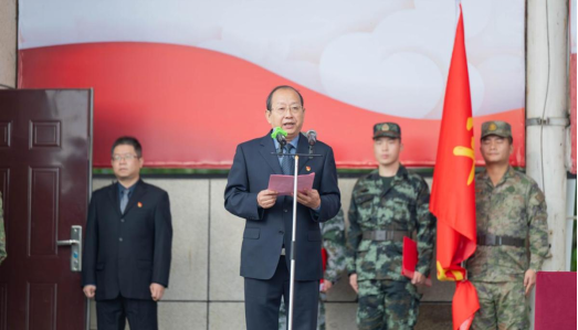 赵春平向军训团郑重授旗,宣布2025级新生军训正式启动。伴随着雄壮的《中国人民解放军进行曲》,鲜红的团旗迎风飘扬,全体参训学员士气高昂,训练场上军容严整、军姿挺拔,展现出新时代青年昂扬向上的精神风貌。
