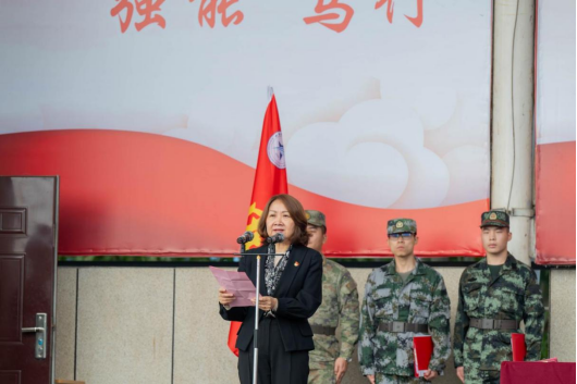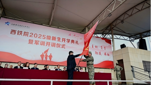 陈红代表学院全体师生,向 2025 级新生致以热烈欢迎,向承训教官表达崇高敬意。她指出,西铁院 70 年来始终坚守 “铁肩担当、匠心育人” 使命,累计培养 11 余万轨道交通及制造行业一线人才,培育出王小卫、樊刚等全国劳动模范与三秦工匠。她强调,“半军事化”管理是学院鲜明特色,而军训是新生从“校园人”迈向“职业人”的关键“第一课”,并对新生提出三点期望:以军训筑牢“纪律之基”,养成“令行禁止、零偏差零失误”的职业自觉,校准技能人才的“安全刻度”;以军训锤炼“坚韧之劲”,传承“反复钻研、精益求精”的匠心,为攻克一线技术难题积蓄动能;以军训凝聚 “协作之力”,领悟 “心往一处想、劲往一处使” 的团队精神,契合轨道交通行业岗位协作的核心需求。