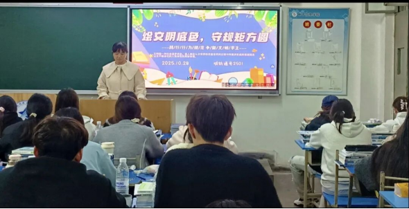 为持续深化学生行为规范养成教育,巩固军训育人成果,筑牢校园安全防线,引导学生自觉践行文明规范,营造安全、文明、和谐、有序的学习生活环境,我院统一部署,各班级积极响应,于10月27日-29日由各班班主任组织召开了以“绘文明底色,守规矩方圆”为主题的全覆盖式班会,内容详实,重点突出,将行为规范的种子深植于学生心中,将安全意识的篱笆扎得更紧。