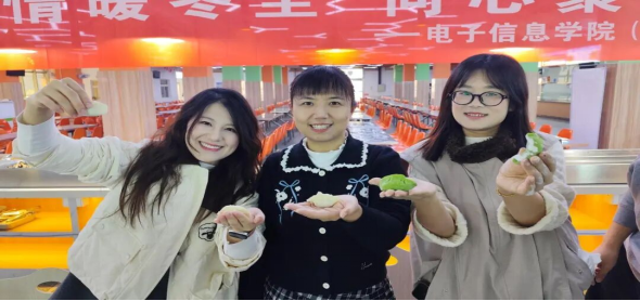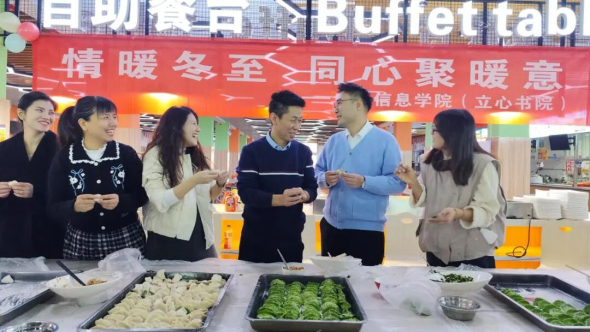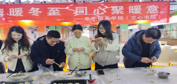 冬至,是中国传统二十四节气之一,也是凝聚温情的重要节日。为弘扬中华优秀传统文化,营造温馨和谐的校园氛围,进一步推动“四进两联一交友”工作走深走实,12月19日上午,电子信息学院团总支于食堂二楼组织开展了“情暖冬至 同心聚暖意”冬至日主题活动。电子信息学院党总支书记仵崇智,党总支副书记薛明,学工办胡士亮老师,全体辅导员、班主任老师参加活动,师生齐聚一堂,亲手包饺子、话习俗、享温暖,在热气腾腾的烟火气中共迎冬至。