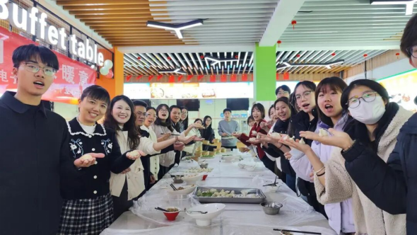 随着一双双巧手翻飞,形态各异的饺子陆续摆满托盘。饺子煮熟后,同学们首先将热腾腾的饺子送至老师手中,以朴素的方式表达感恩之情。随后,师生围坐共餐,品尝着自己亲手制作的美味,聊学习、话生活,气氛温馨融洽。活动不仅是一次传统文化体验,更是一次情感的交流与凝聚,真正体现了“联系同学”“与学生交朋友”的工作内涵。