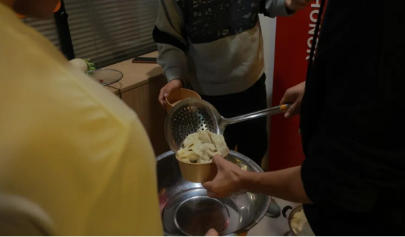 经过同学们的精心制作,饺子陆续出锅,师生围坐一堂,共同品尝劳动成果,交流劳动心得,为彼此的手艺点赞。老师们关切询问同学们的学习生活情况,同学们也敞开心扉,在轻松愉快的氛围中,畅谈学习生活中的点点滴滴。这一刻,饺子不仅满足了味蕾,更成为连接心灵的纽带,让“一站式”学生社区真正成为汇聚温情、凝聚力量的育人家园。