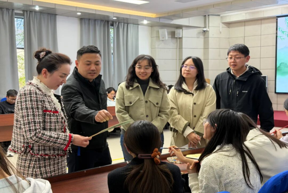 之后“红讲团”的同学用激昂的声音与真挚的情感,带领在场师生缅怀先烈,让红色信仰在青春中扎根。随后,书画创作环节创意十足、墨香四溢。同学们在扇面、书签上挥毫泼墨,将对先烈的追思、春日的期许以及家国的热爱,尽数融入一笔一画,让思念在笔尖流淌,让文化在传承中焕发生机。