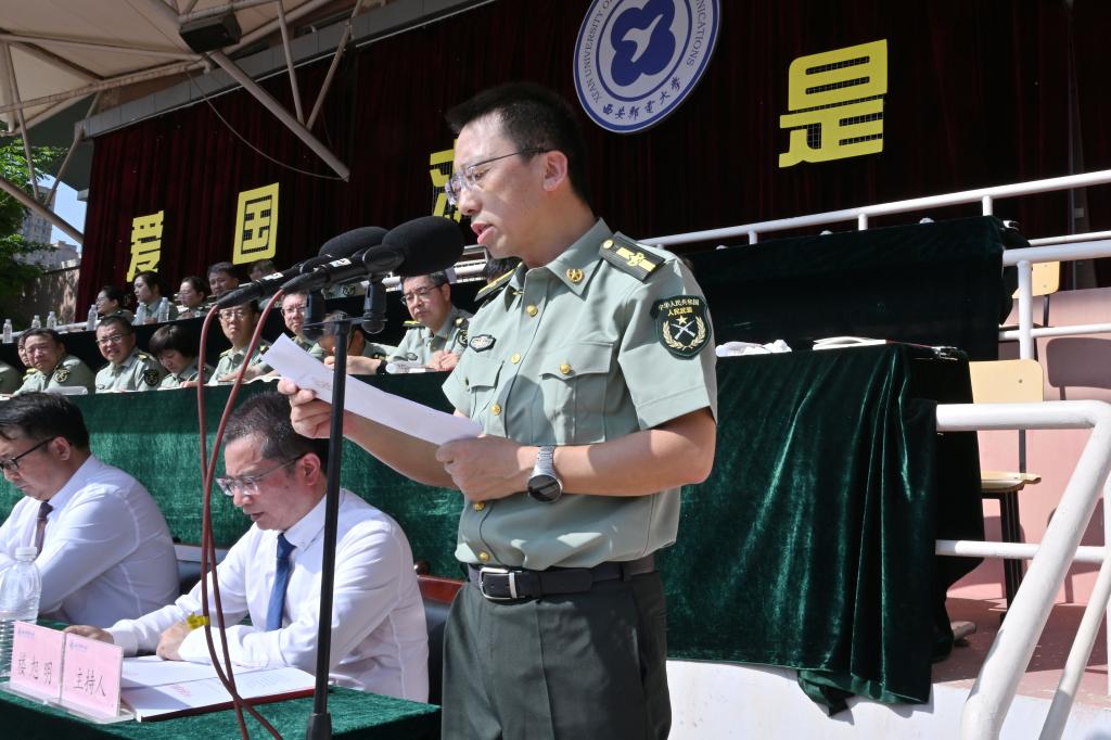 空军工程大学汤煜大校在讲话中代表全体承训官兵向西安邮电大学各级领导、全体辅导员老师以及保障人员表示衷心的感谢。他表示,参训学生用昂扬姿态诠释着青春担当与家国情怀,希望同学们将军训的收获成果带到未来学习生活中去,内化为自己最宝贵的精神财富,以军人般的意志面对未来的挑战,踔厉奋发,笃行不怠。期待与学校在人才培养、学术交流、科研创新等领域展开全方位、深层次的合作交流,共同携手前行,打造军地院校合作新典范,为服务国家战略需求、推动地方经济发展作出更大贡献。