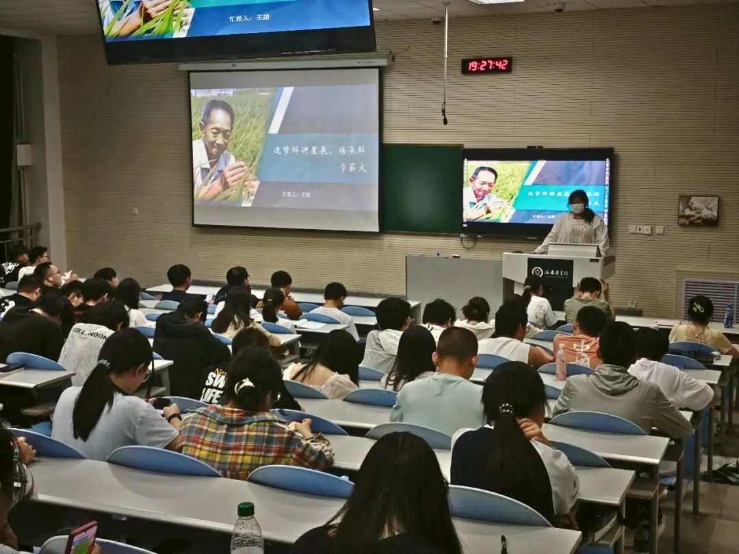 宣讲会上,王喆同学以“科学家精神的时代内涵与传承使命”为主题,讲述了袁隆平、钟南山、陈薇、顾方舟等科学家的事迹,展现了他们在自身领域凭借着勇于探索和创新的科学精神所取得的卓越成就,系统阐释了科学家精神的核心要义。他们以深厚的家国情怀和无私的奉献精神,将个人理想融入国家发展,用行动诠释了科学工作者的责任与担当。王喆同学在发言中呼吁新时代大学生要深刻领悟科学家精神的内涵,以科学家为榜样,保持好奇求知、严谨治学的科研态度,积极参与科研,传播科学精神,播撒科学火种。
