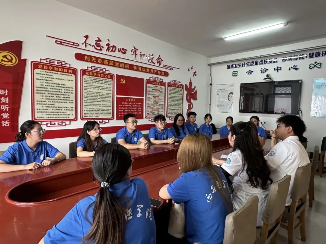 座谈会上,王艳院长对实践团的到来表示欢迎,并详细介绍了卫生院组织架构、科室设置以及在服务基层群众健康方面的工作成效。她希望实践团成员能结合专业所长,为卫生院发展和基层健康服务提供建设性意见。实践团带队老师阐述了此次活动的背景、目的及成员构成,强调此行旨在通过深入调研,了解基层医疗卫生实际需求,促进专业知识与实践相结合,为乡村健康事业贡献力量。双方围绕基层医疗人才队伍建设、医疗服务能力提升等关键议题进行了深入交流,实践团成员就关切问题进行了咨询,卫生院相关负责人予以解答。