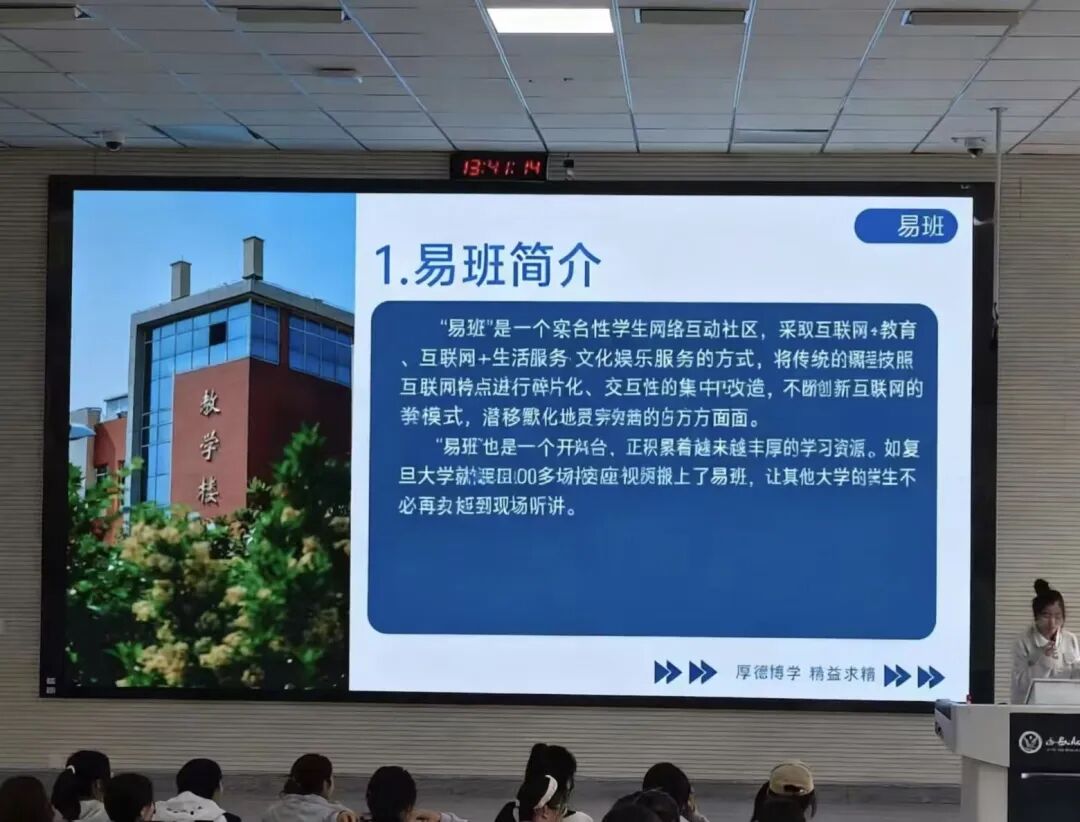 易班作为在线学习社区,集课程资料、学习交流、活动报名等功能于一体。易班工作站的学生干部详细讲解了易班的使用方法,方便同学们更好地了解校园,获取护理与康复学院资讯,提高同学们的学习兴趣。