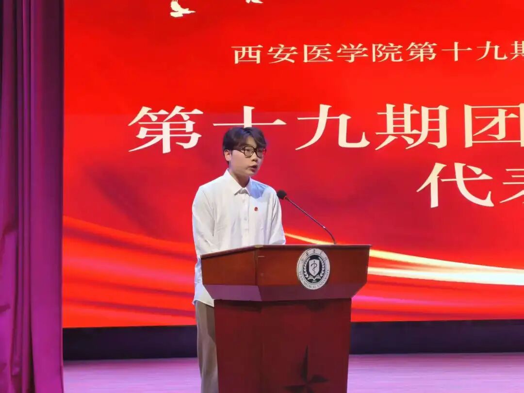 第十九期新学员代表张祖豪作表态发言。他承诺,全体学员将严格遵守培训制度,积极参与理论学习和实践锻炼,不断提升履职能力,团结带领广大团员坚定信念、跟党奋斗,在青春赛道上跑出最好成绩。