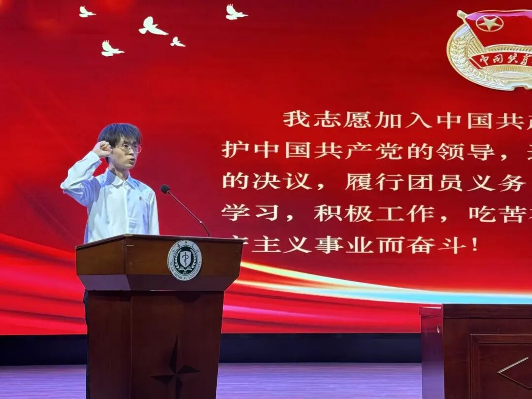 随后,学生团干部白宇乐带领全体学员重温入团誓词。