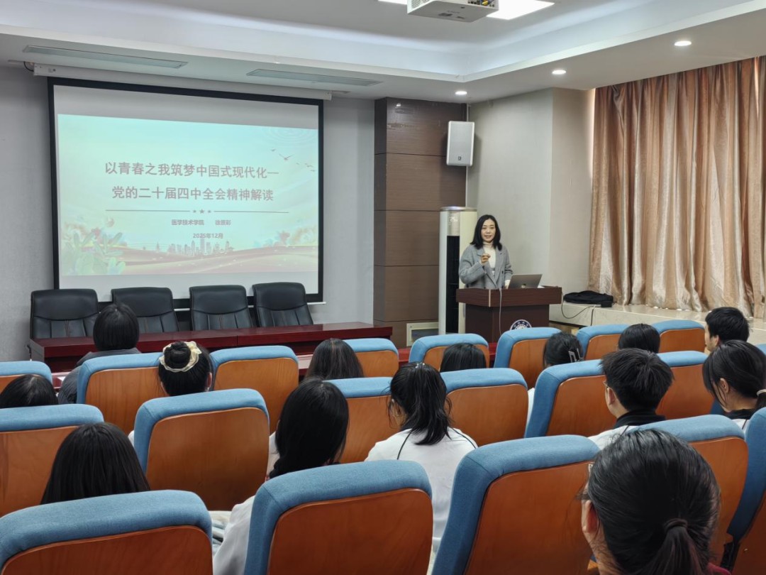 为引导学生党员深刻领会党的二十届四中全会精神,明晰中国式现代化的内涵与青年使命,12月18日中午,医学技术学院党总支副书记徐景彩讲授“以青春之我筑梦中国式现代化——党的二十届四中全会精神解读”专题党课。全体在校生党员参加此次党课学习。