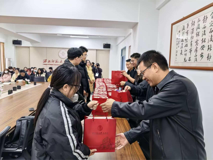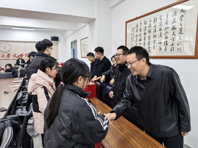 学院向每位考研学子发放精心准备的“考研暖心礼包”,表达对学生的深切关怀与美好祝愿。此次慰问交流会体现了文学院对学生成长的一贯重视与支持。学院将继续做好服务保障工作,做学子求学路上的坚强后盾。衷心祝愿文学院全体考研学子执笔为剑,披荆斩棘,金榜题名!