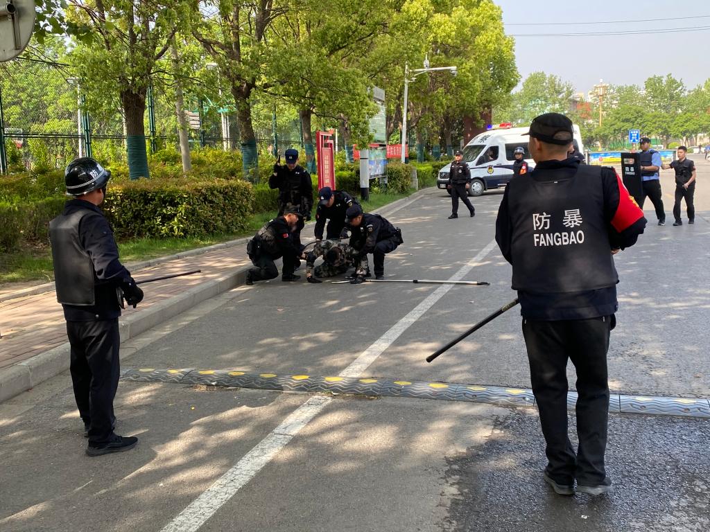 为强化“警校联动”机制,提高安保人员对暴恐事件的快速反应和妥善处置能力。4月25日上午,我校联合东城区公安分局、半截河派出所开展了反恐防暴应急演练活动。副院长赵强现场指挥,保卫处副处长张广克、学生处副处长王川、各二级学院团总支书记现场观摩,全体安保人员、师生代表等共计100余人参加活动。