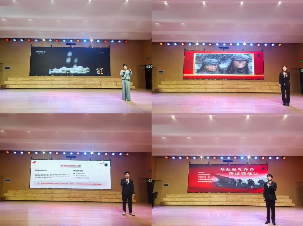 在展演环节中,获奖学生代表依次登台,呈现了一场深刻而动人的红色精神盛宴。航空工程学院王紫阳同学以《雪漫长津凝壮志,枪横冰原铸英名》为题,生动刻画了长津湖战役中志愿军战士的铁血忠魂;医疗卫生学院马敏慧同学通过《以青春步履踏红色热土,用初心担当续中华血脉》,深情诠释了青年一代继承革命传统的坚定信念;五年制部秦浩瀚同学带来的《不朽》,则展现了红色基因代代相传的永恒力量。此外,杨靖宇将军的英勇抗战、“半条被子”的军民深情、吉鸿昌烈士的爱国壮举等经典故事,也在选手们的动情讲述中一一重现,引发全场师生深切共鸣。