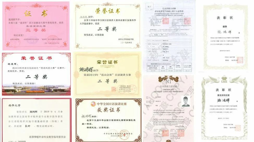 选择日语专业也许是冥冥中注定的。初中时,施鸿辉就非常热爱语言学习,高中时,施鸿辉的英语成绩比较拔尖。高考后,出于对《成都》这首歌的迷恋,这个福建男孩与西华结缘,并选择了日语作为本科专业。