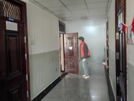 下午14:00,模拟烟雾升起,警报声响彻公寓楼。楼内学生在辅导员及安全员的引导下,迅速进入应急状态,严格按照“掩住口鼻、弯腰低姿、有序撤离”的要点,沿预定疏散路线快速向安全地带转移。整个过程组织严密、配合默契,全体参演学生在规定时间内安全集结。