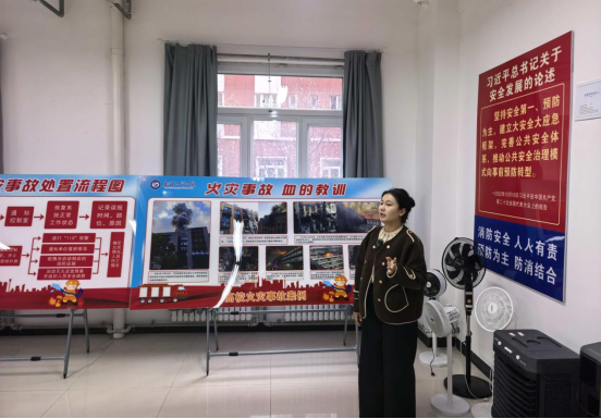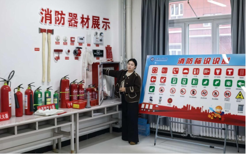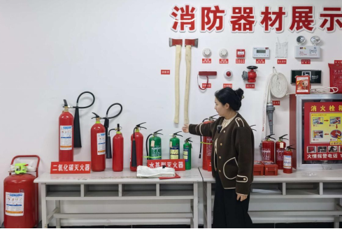 在讲解消防器材时,阿合娜尔老师强调灭火器各有侧重,使用方法不尽相同。