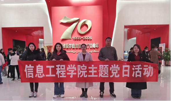 在深入学习贯彻习近平新时代中国特色社会主义思想、全面落实新时代党的治疆方略的关键阶段,为切实感悟新疆70年发展的磅礴伟力,进一步筑牢党员理想信念根基。11月14日,由信息工程学院党委副书记李晓琴,组织员古丽波斯坦·木合塔尔、学工办负责人聂彪彪、学生第一党支部书记扎吾列·卡德拉洪、学生第二党支部书记杜佳雯,与高铁街道党工委、天鹅湖社区党委、立昂技术股份有限公司、自治区电商协会、新疆大明顺通建筑工程有限公司联合开展主题党日活动。各方党员同志一同走进“六馆一心”,参观新疆维吾尔自治区成立70周年主题成就展,在回望奋斗征程中凝聚同心协力干实事的磅礴力量,以党建引领促进多方资源融合,为新疆高质量发展注入协同动力。