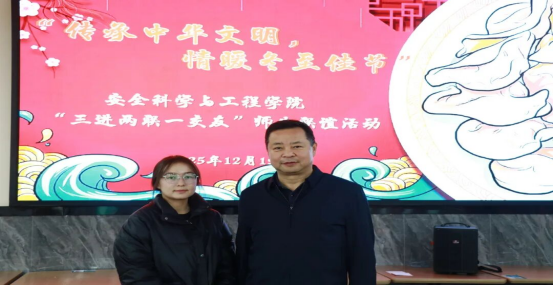 趣味横生的互动游戏让现场氛围持续升温。土木工程学院的 “击鼓传花” 环节让大家在轻松交流中领略南北冬至民俗的差异,感受中华传统文化的博大精深。控制工程学院和数理学院的“冬至习俗知多少”知识抢答赛,考验着同学们对传统节气的了解,大家踊跃举手、积极作答,在比拼中收获知识。机电工程学院的师生们共同参与了红色祈愿卡制作活动,在红纸上描绘温情祝福,不仅锻炼了动手能力,更在协作中加深了彼此间的情感联系。经济管理学院和安全科学与工程学院的“互换联系卡”环节中,同学们将亲手书写的祝福递给交友老师,字里行间流露出的真诚谢意与美好憧憬,架起了心灵互通的桥梁,让“三进两联一交友”的情谊在寒冬里深深扎根,温暖前行。