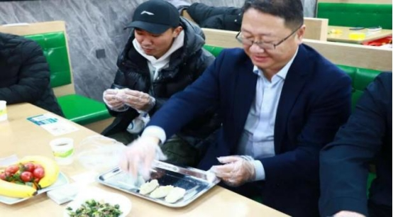 学校党委副书记、校长周建平亲切询问同学们的学习进度、专业难点,细致了解大家的生活状况与思想动态,耐心倾听大家在学业规划、职业选择中遇到的困惑。从期末复习的高效方法,到专业领域的发展前景,再到校园生活的细节建议,周校长结合自身经验一一给出解答与叮嘱,句句关切直抵人心。交谈间隙,师生一同品尝热气腾腾的饺子,鲜香的馅料暖了胃,真挚的交流暖了心,这一幕不仅定格了“三进两联一交友”的温情瞬间,更让同学们感受到了学校如同“家”一般的关怀与温暖。