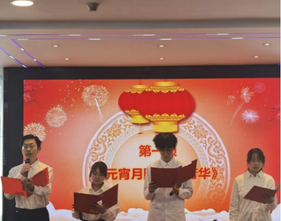 文艺展演环节精彩纷呈,将现场气氛不断推向高潮。朗诵《元宵月圆 共庆芳华》声情并茂,传递出团圆之美与青春芳华;民族舞蹈《顶碗舞》灵动优美,展现出民族文化的深厚底蕴与独特风采,赢得现场阵阵掌声。随后,一场趣味盎然的元宵节猜灯谜活动让现场欢声笑语不断。主持人抛出一道道兼具知识性与趣味性的谜题,师生们踊跃举手、积极抢答,在轻松互动中加深了对传统文化的了解,增进了彼此默契,现场气氛热烈融洽。