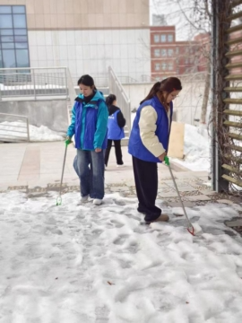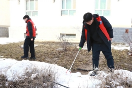 矿业工程与地质学院学生党支部在学生社区开展“青春雷锋行”学习雷锋精神主题党日活动,将党员教育与实践服务相结合,作为学院新学期党员教育的“第一课”。活动中,全体学生党员不畏低温严寒,分工协作、干劲十足,手持工具认真清理公寓楼周边的残冰积雪,细致捡拾绿化带与道路旁的垃圾杂物,不怕脏、不怕累,以饱满的热情投身社区环境整治。