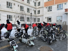 安全科学与工程学院在3月5日学雷锋纪念日到来之际,由分团委老师组织大学生安全协会、消防志愿者协会开展学雷锋校园志愿服务活动。志愿者们聚焦校园环境美化与秩序维护,对校园绿化带、雪堆及各类卫生死角进行集中清理;针对校园内自行车、电动车乱停乱放问题,开展专项整理,有效改善校园交通秩序,为师生出行提供便利。
