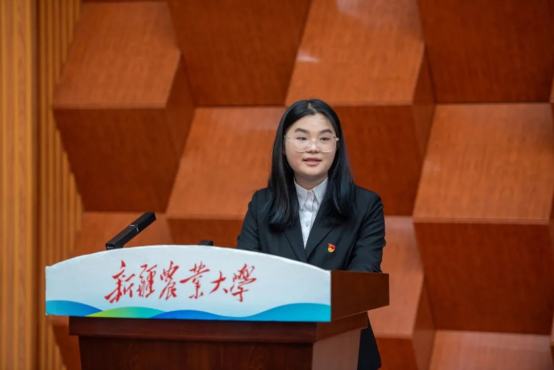 随后,新疆农业大学第十五届大学生新闻中心主任刘洁作年度报告,以数据和案例展示成果:全网15万+粉丝、连续5年获百强融媒体称号、思政作品获团中央认可、“小薇”IP成文化符号……她致谢团队:深夜改稿、活动抢拍的默契成就了这些成绩;并寄语新人:传承“小薇”精神,以热爱续写精彩。