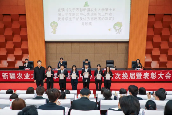 2025年4月12日,新疆农业大学大学生新闻中心第十六次换届暨表彰大会在图书馆学术报告厅举行。