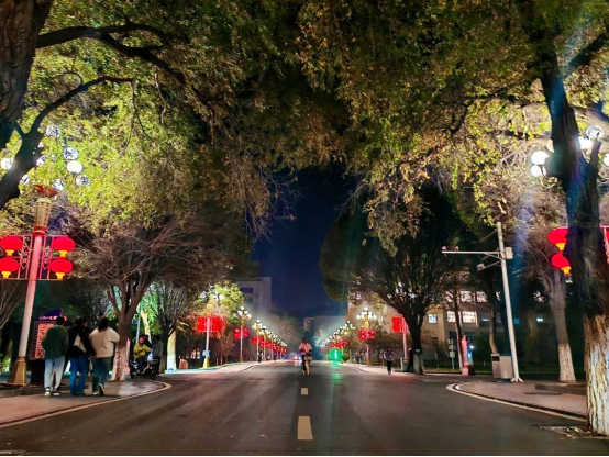 校园的灯光柔和而温馨