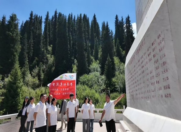 离开陵园,实践队走进距乔尔玛烈士陵园不到4公里的天山西部国有林管理局尼勒克分局乔尔玛管护所。这里,林业人正以另一种方式守护天山:夏日的乔尔玛,烈日灼烤着柏油路,游客的欢声笑语与汽车的鸣笛交织成网,路两边的森林里随处可见悠闲的游人席地而坐,享受着大自然的馈赠与美食的惬意。而管护所全体管护员此时正奋战在护林第一线,为森林的安全、游客的安全挥汗如雨,顾不上吃饭与睡觉,做着护林防火宣传与隐患排查。“夏天,我们的管护员每天要跑遍几十个火险点,顾不上吃饭喝水——山上的风大,火势蔓延得快,晚一分钟都可能酿成大祸。有些游客不理解,说我们‘小题大做’:‘不就是抽根烟吗?至于追着讲?真讨厌!’”分局书记胡义军指着远处的雪峰,声音里带着疲惫与骄傲,“冬天,大雪封山,这里回归绝对的寂静,伴随着的是常人难以忍受的孤独和寂寞,那时,这里只有管护员与陈俊贵老人还在坚守,一个冒着齐腰深的积雪巡林,一个顶着风雪与墓碑对话。守望与守护,皆为青山铸魂。”
