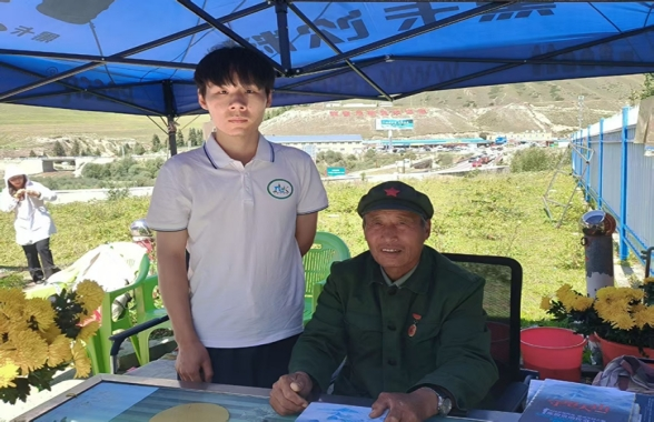 在乔尔玛烈士陵园,实践队员们肃立默哀,向长眠于此的烈士献上鲜花。陈俊贵老人用沙哑而坚定的声音,讲述着“一个馒头”的生死约定——为了一句承诺,他守墓三十余载,用余生践行对战友的诺言。这守望,是跨越生死的忠诚,是刻在骨血里的信仰。实践队偶遇5位当年第一批筑路老兵——他们从四川、广东等地远赴而来,只为看望长眠于此的战友。纵然步履蹒跚,他们仍以最质朴的方式诉说半世纪未改的深情,表达着对这片土地的厚爱。